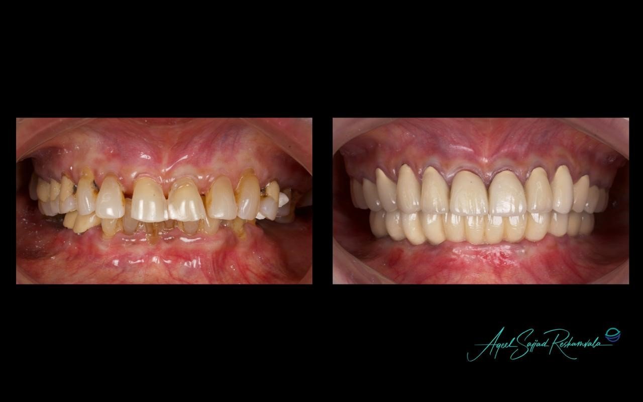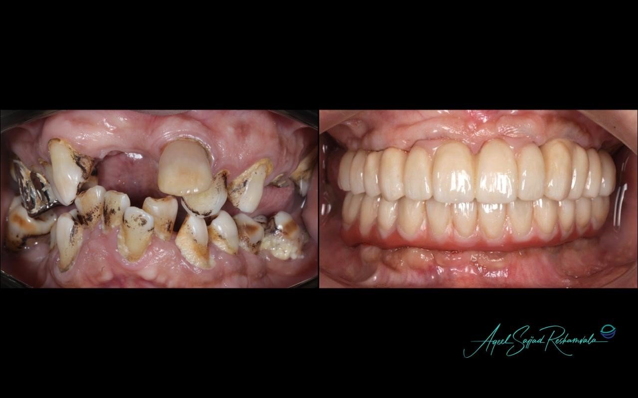 Our patient came to us with severely maligned teeth, advanced periodontal problems, mobility and constant halitosis that affected his confidence and daily life.
